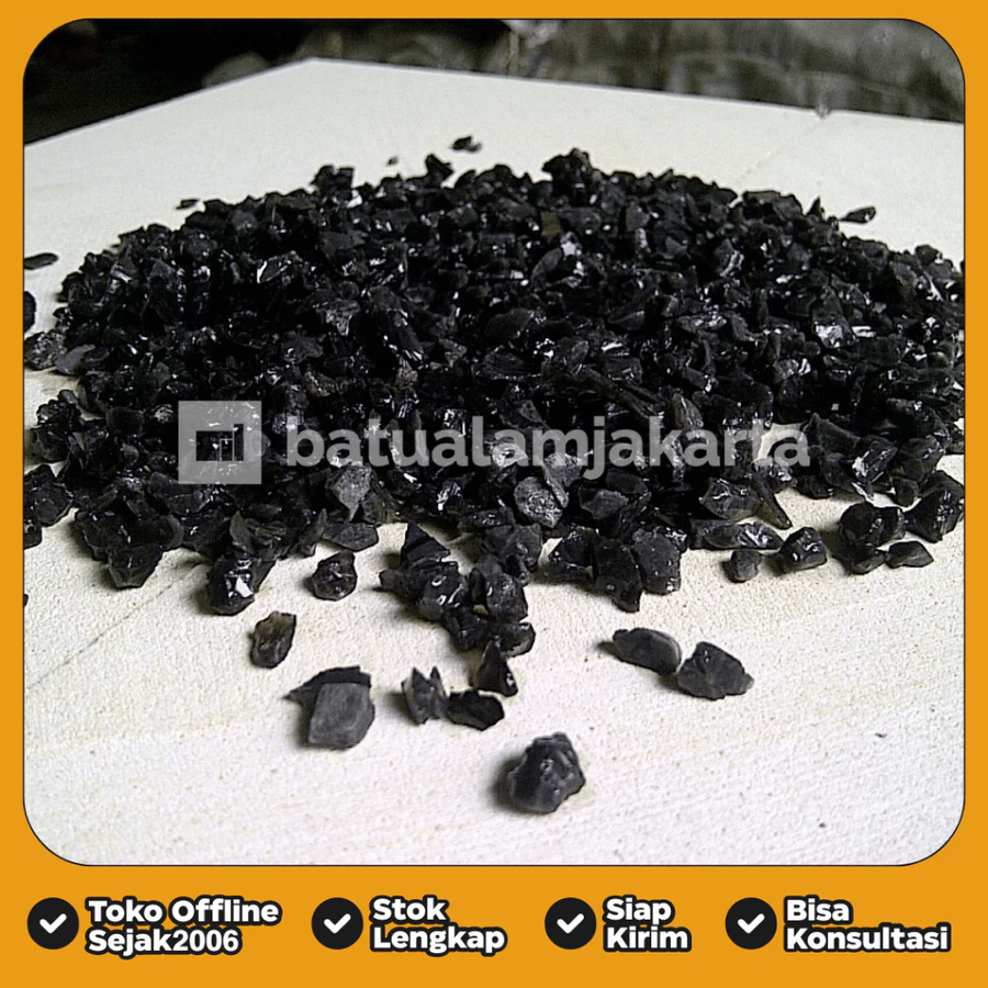 Pasir Granit Hitam merupakan material alami berkualitas tinggi yang menghadirkan kesan tegas, elegan, dan modern pada berbagai area rumah maupun proyek komersial. Warna hitam pekat dengan kilau alami khas granit menjadikannya pilihan ideal untuk campuran teraso, finishing lantai dekoratif, hingga taburan taman minimalis.
